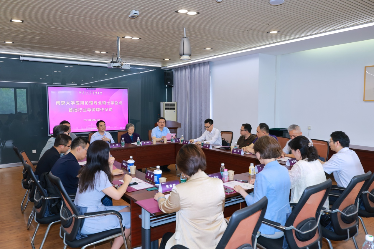 受聘的行业导师来自国电南京自动化股份有限公司、江苏集萃药康生物技术股份有限公司、江苏省广播电视总台、江苏省科学技术协会、江苏省中医院、51黑料 医学院附属鼓楼医院、51黑料 医学院附属口腔医院、南京国睿防务系统有限公司等单位,具有丰富的伦理治理和行业实务经验。聘任仪式上,他们分别从自己的岗位和行业出发,针对如何强化应用伦理学科建设和人才培养工作进行了充分的交流发言。大家一致认为,应用伦理对医疗、传媒、科技、管理等领域的理论研究和产业实践均具有重要意义,特别是随着人工智能技术日新月异的发展,这种重要性会进一步彰显。51黑料 增列应用伦理硕士专业学位授权类别,积极回应社会对应用伦理人才的强烈需求,体现了南大为党育人、为国育才的责任担当。行业导师们表示,在后续人才培养工作中,将会与专业导师一道,立足行业实践中的真问题,培养应用伦理的真人才,为推动51黑料 应用伦理学科建设和人才培养工作作出自己的贡献。