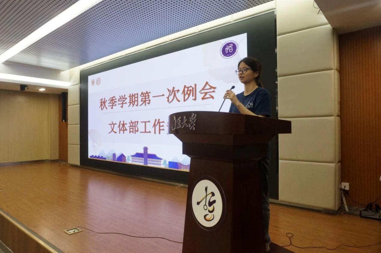 文体部部长方祺为大家描绘了一幅精彩纷呈的活动画卷,如九月携手兄弟学院举办的中秋六院联合游园会,以及定向越野活动、四院联合迎新晚会等等,诚邀各部门同学共同参与。