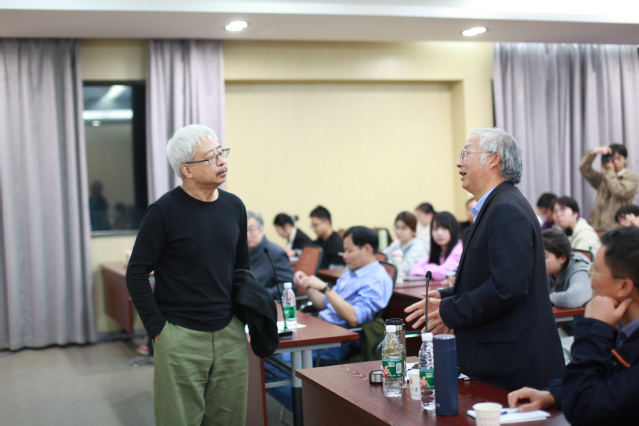 在讲座问答环节,主持人张建军老师和出席会议的王恒、顿新国、苏向荣、马前进、南亚伶、杨忻程、郑天祥等校内外老师及多位同学与鞠老师展开了长时间热烈的研讨,内容涉及“广义论证与古今社会、文化的关系”“广义论证理论的评价标准的合规则性与狭义论证的有效性的关联”,“论证与论辩的区别”,“社会群体间的交互性与公共性”,“不同社会群体间的社会规范如何确定”,“客位视角与主位视角的相互转换”,“广义论证研究过程中何时、如何修正规则及其修正根据”,“本土化规则与主位规则的关系”,“广义论证理论是否存在元理论结构”,“隐喻、相干性与广义论证的关系”等多方面问题,鞠老师均一一予以精彩回应。鞠老师在回答中再次强调了广义论证理论与经典论证理论的区别,广义论证是面向生活世界的实际论证,其前提与规则是随着语境不断变化的,规则会根据使用效果进行动态修正;但这与主位视角下的跨界交互并不矛盾,不同文化间的交流并没有建立客观性而只是某种公共性。此外,为了保持描述恰当性与解题高效性之间的合理张力,广义论证方法与形式逻辑方法需要互补,也即对论证过程进行局部合理的逻辑重建。比如在忽略语境变动的条件下,仍然可以构建形式逻辑的有效性标准。
