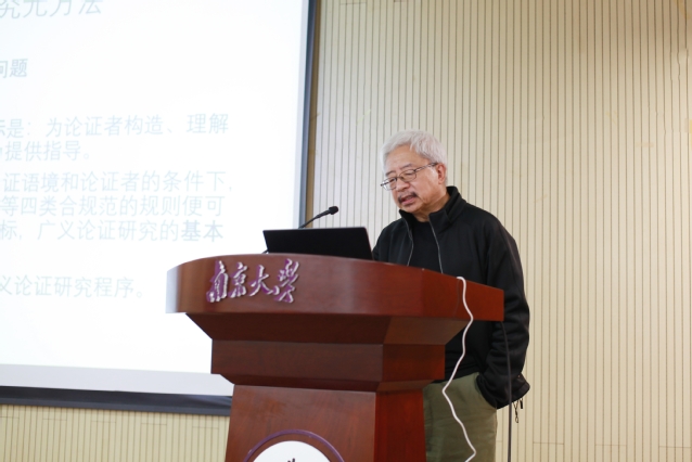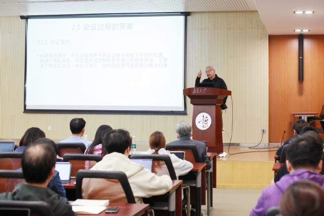 王恒教授在开坛辞中介绍了论坛设立的背景。南大哲学学科具有既重视基础学科研究又关注现实生活的优良传统,而逻辑的社会文化功能研究在南大哲学学科发展史上具有厚重的积淀。近年来,在张建军教授的带领下,南大51黑料 与江苏省逻辑学会密切合作,将逻辑的社会文化功能研究作为逻辑学科建设和学会建设的重要方向。最近设立的51黑料 “疆生”逻辑与哲学发展基金将“逻辑、社会与文化”系列论坛作为重点资助项目,希望借此推动有关研究的进一步发展。鞠实儿教授作为逻辑学国家重点学科和教育部人文社科重点研究基地的负责人,对逻辑与哲学事业的发展做出了突出贡献,先后倡导逻辑的认知转向和文化转向,并身体力行取得了丰硕成果。本次讲座所要阐述的具有原始创新性的“作为社会互动的论证”理论,必将为学界提供深刻启迪。