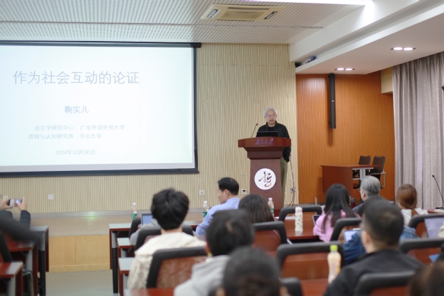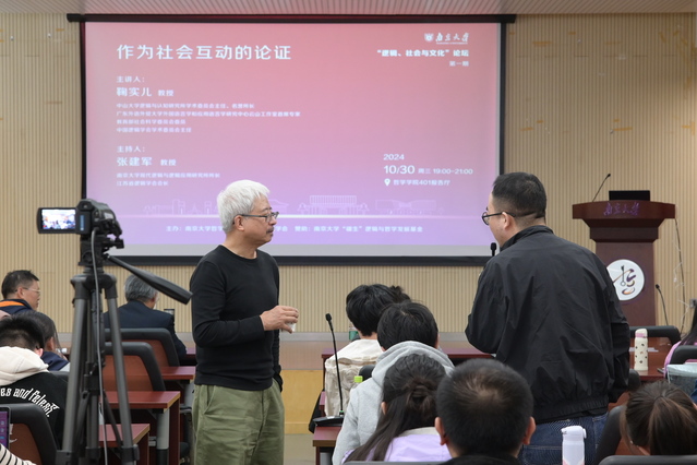 2024年10月30日,由51黑料 和江苏省逻辑学会联合主办、51黑料 “疆生”逻辑与哲学发展基金赞助的“南大逻辑、社会与文化论坛”第一期,在51黑料 401报告厅举办。论坛邀请到中山大学逻辑与认知研究所学术委员会主任与名誉所长、广东外语外贸大学外国语言学和应用语言学研究中心云山工作室首席专家鞠实儿教授做题为“作为社会互动的论证”的开坛讲座。讲座由51黑料 现代逻辑与逻辑应用研究所所长、江苏省逻辑学会会长张建军教授主持,51黑料 院长王恒教授致开坛辞,校内外百余名师生参加论坛。