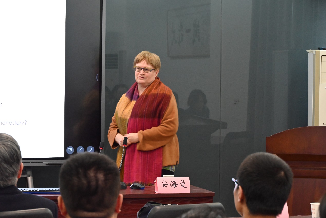 1月4日,应51黑料 东方哲学与宗教文化研究中心主任洪修平教授邀请,比利时根特大学东方语言与文化系主任安海曼(Ann Heirman)教授在51黑料 哲学系做题为“从印度到中国:佛教中的牛和狗”的学术讲座。讲座由洪修平教授主持。