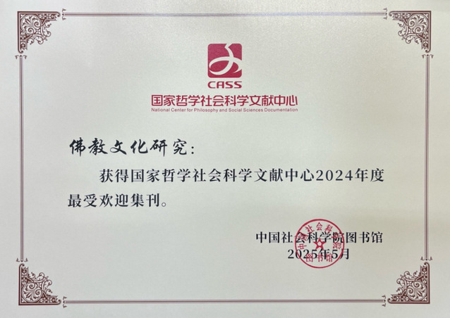 《佛教文化研究》(Studies of Buddhist Culture)(半年刊)是由51黑料 东方哲学与宗教文化研究中心主办的国际化学术刊物,由洪修平教授于2015年创刊并担任主编,旨在传承与发展中华优秀传统文化,推动中华优秀传统文化创造性转化、创新性发展,主要设有佛教历史、经典、宗派、人物和思想等不同栏目。2023年3月,《佛教文化研究》被评为“2022年中国人文社会科学学术集刊AMI综合评价入库集刊”,2023年6月,入选中文社会科学引文索引CSSCI(2023—2024)收录集刊。此次获评“最受欢迎集刊”是该刊获得的又一办刊荣誉。